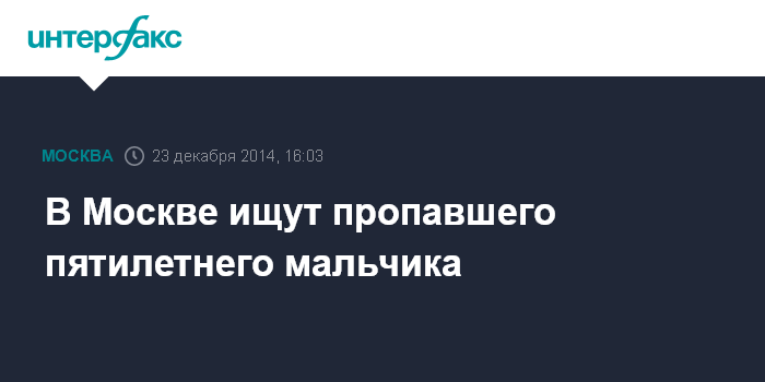 Москва. 23 декабря. INTERFAX.RU - Полиция разыскивает пятилетнего мальчика, пропавшего на севере столицы, сообщили "Интерфаксу" в пресс-службе ГУ МВД по Москве.
