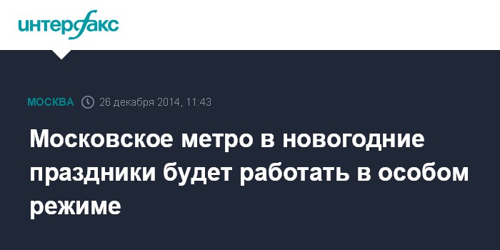Москва. 26 декабря. INTERFAX.RU - Столичный метрополитен в ночь с 31 декабря на 1 января и с 6 января на 7 января будет работать до 2:00, сообщили "Интерфаксу" в пресс-службе предприятия в пятницу.