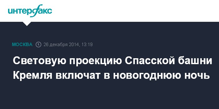 По словам Девятова, в настоящее время вопрос о световой инсталляции на Спасской башне прорабатывается с правительством Москвы. "Мы рассчитываем, что в ночь с 31 декабря на 1 января световая проекция башни с идущими курантами будет", - сказал официальный представитель ФСО.