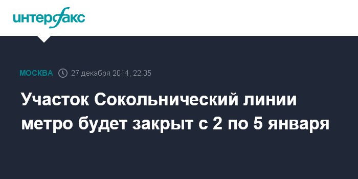 Участок Сокольнический линии метро будет закрыт с 2 по 5 января