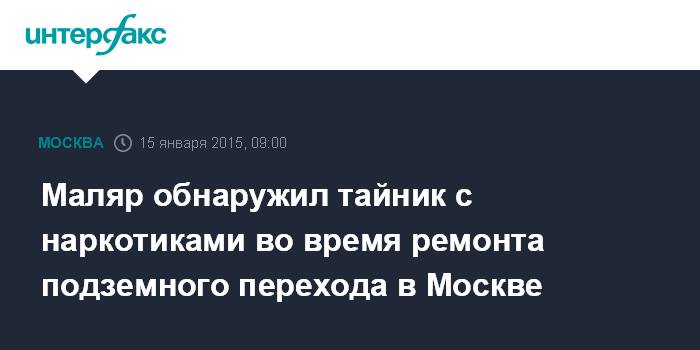Москва. 15 января. INTERFAX.RU - Тайник с наркотиками обнаружен в подземном переходе во время ремонтных работ на севере столицы, сообщили "Интерфаксу" в пресс-службе московской полиции.