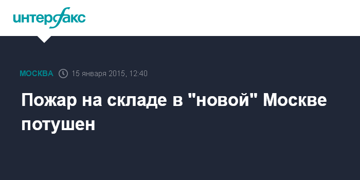 Москва. 15 января. INTERFAX.RU - Ликвидирован крупный пожар на складе мясокомбината в "новой" Москве, сообщили "Интерфаксу" в пресс-службе ГУ МЧС России по Москве.
