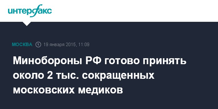 Минобороны РФ готово принять около 2 тыс. сокращенных московских медиков