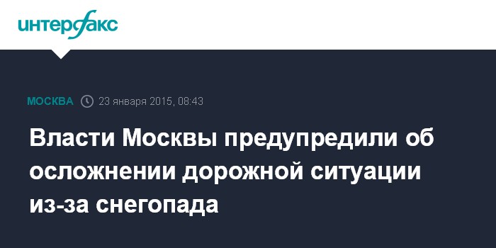 Москва. 23 января. INTERFAX.RU - Сильный снегопад в Москве осложнит дорожно-транспортную ситуацию, сообщили "Интерфаксу" в пресс-службе столичного департамента транспорта и развития дорожно-транспортной инфраструктуры в пятницу.