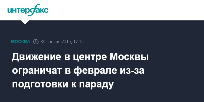 Москва. 30 января. INTERFAX.RU - В столице в феврале будет ограничено движение автотранспорта, связанное с подготовкой проведения парада Победы.