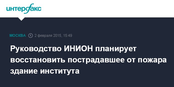 Москва. 2 февраля. INTERFAX.RU - Здание Института научной информации по общественным наукам РАН, сильно поврежденное пожаром, будет восстановлено, а его сотрудники временно переедут в другие научные учреждения, сообщает пресс-служба института.