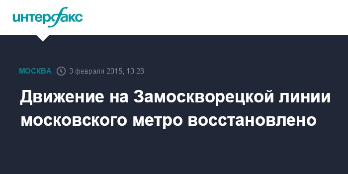 В пресс-службе столичного департамента транспорта и дорожно-транспортной инфраструктуры "Интерфаксу" сообщили, что движение поездов на Замоскворецкой линии было восстановлено в 12:52 и в данный момент возвращается в график.
