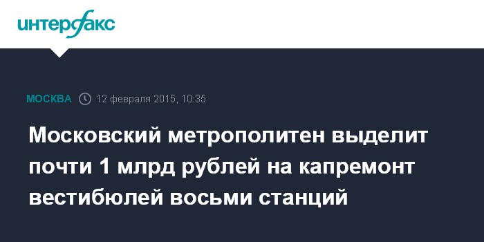 Москва. 12 февраля. INTERFAX.RU - Аукцион в электронной форме на выполнение работ по благоустройству вестибюлей восьми станций метрополитена и подземных пешеходных переходов, прилегающих к ним, объявлен в Москве.