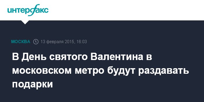 Москва. 13 февраля. INTERFAX.RU - Пассажиры московского метро 14 февраля получат подарки в честь Дня святого Валентина, сообщает пресс-служба Московского метрополитена.