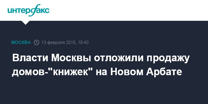 Власти Москвы отложили продажу домов-"книжек" на Новом Арбате
