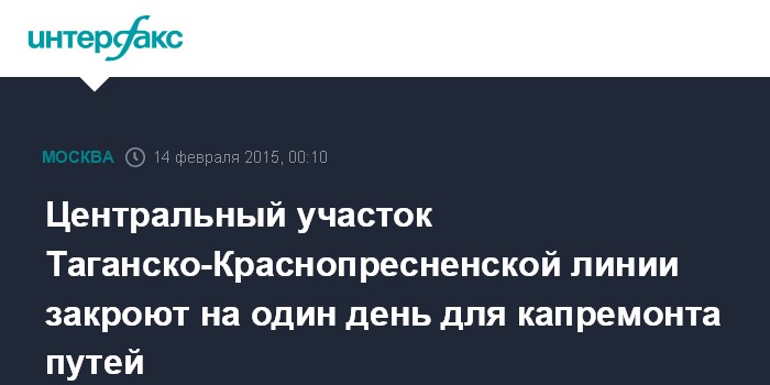 В администрации метро поясняют, что ограничения вводятся из-за работ по капитальному ремонту, предстоит замена рельсов, шпал, балластного слоя и других элементов. Поезда Таганско-Краснопресненской линии 14 февраля будут ходить только на участках от станции "Планерная" до станции "Баррикадная" и от станции "Таганская" до станции "Жулебино".