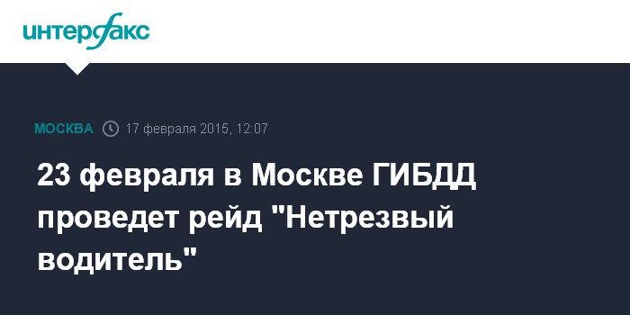 Москва. 17 февраля. INTERFAX.RU - Столичное управление ГИБДД готовит автолюбителям "подарок" ко Дню защитника Отечества в виде рейда "Нетрезвый водитель", сообщили в пресс-службе ведомства. "В целях профилактики и пресечения грубых нарушений Правил дорожного движения на территории города Москвы пройдет оперативно-профилактический рейд "Нетрезвый водитель", направленный на предупреждение случаев управления транспортом водителями в нетрезвом состоянии. Основной этап мероприятия пройдет в два периода - в ночь с 21 на 22 февраля и с 23 на 24 февраля 2015 года", - сообщил "Интерфаксу" сотрудник пресс-службы во вторник.