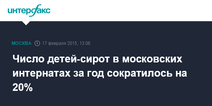 Москва. 17 февраля. INTERFAX.RU - В 2014 году число детей, воспитывающихся в интернатах столицы, сократилось на 20%, сообщил мэр столицы Сергей Собянин на заседании президиума правительства города во вторник.