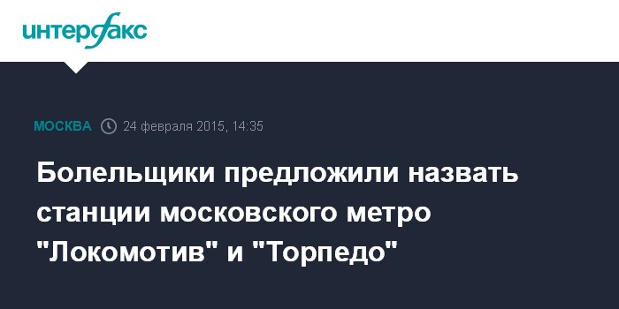Москва. 24 февраля. INTERFAX.RU - Футбольные болельщики обратились к столичным властям с просьбой переименовать станции метро "Черкизовская" в "Локомотив", а "Автозаводскую" в "Торпедо".