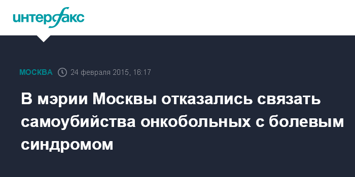 В мэрии Москвы отказались связать самоубийства онкобольных с болевым синдромом