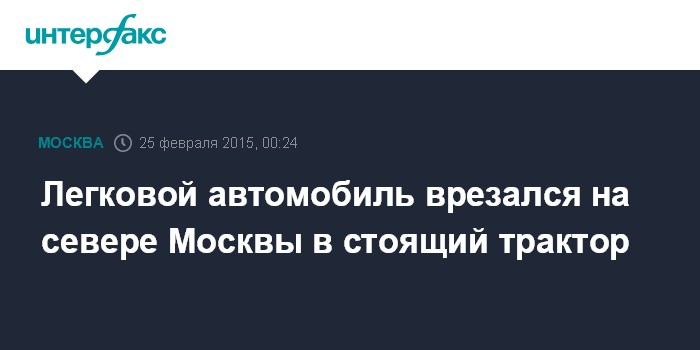 Москва. 25 февраля. INTERFAX.RU - Один человек погиб в результате наезда легкового автомобиля на стоящий трактор, сообщили "Интерфаксу" в пресс-службе ГИБДД Москвы