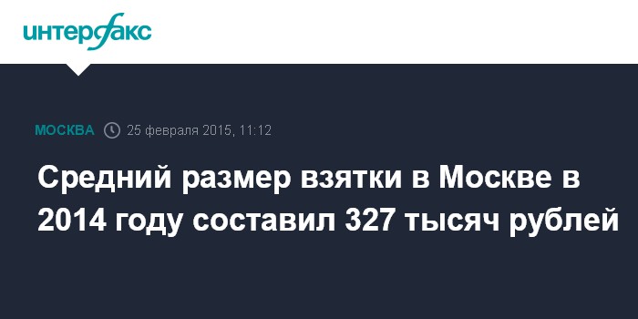 Средний размер взятки в Москве в 2014 году составил 327 тысяч рублей