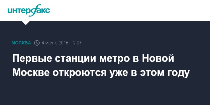 Москва. 4 марта. INTERFAX.RU - Первые станции метро на территории Новой Москвы откроются в нынешнем году, сообщил в среду мэр столицы Сергей Собянин во время осмотра строящейся станции "Саларьево".
