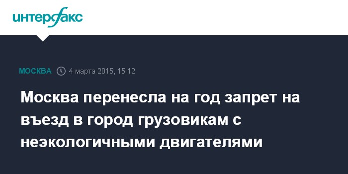 Ранее "Интерфакс" сообщал, что мэр Москвы Сергей Собянин 27 февраля поручил рассмотреть вопрос о переносе на 1 сентября 2016 года срока введения дополнительных экологических ограничений на въезд грузового транспорта в Москву.