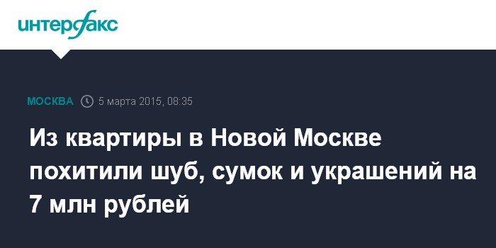 Москва. 5 марта. INTERFAX.RU - Воры вынесли из квартиры в Новой Москве ценности на 7 млн рублей, сообщили в четверг в пресс-службе столичной полиции.