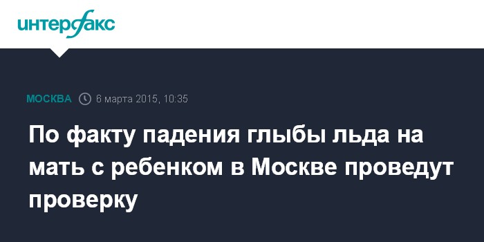 Ранее в главном управлении МВД России по Москве "Интерфаксу" сообщили, что в четверг вечером в полицию поступило сообщение от очевидца о падении ледяной глыбы с крыши девятиэтажного дома на женщину с грудным ребенком.