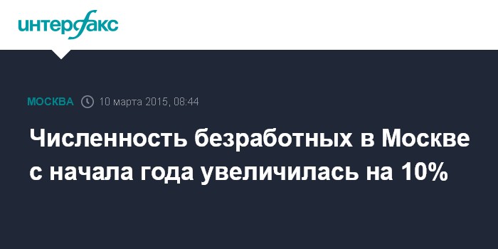 Москва. 10 марта. INTERFAX.RU - По данным столичной службы занятости, с начала 2015 года численность зарегистрированных безработных граждан в Москве увеличилась на 2865 человек или на 10%.