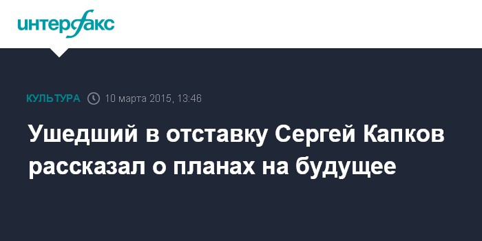 Москва. 10 марта. INTERFAX.RU - Бывший глава департамента культуры столицы Сергей Капков после своей отставки намерен отдохнуть.