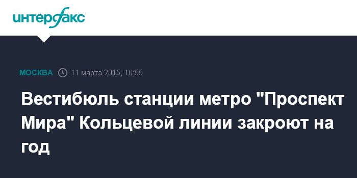 Вестибюль станции метро "Проспект Мира" Кольцевой линии закроют на год
