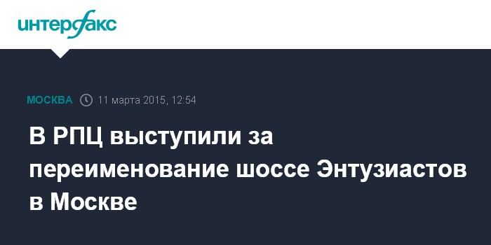 Москва. 11 марта. INTERFAX.RU - Шоссе Энтузиастов следует вернуть историческое название, считают в Русской православной церкви.