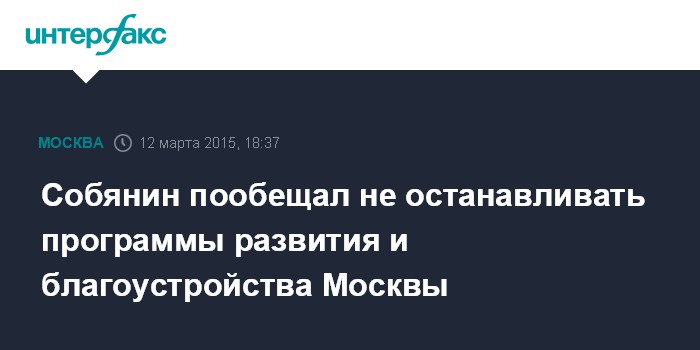Москва. 12 марта. INTERFAX.RU - Москва не намерена сворачивать реализацию программ развития в непростых экономических условиях, заявляет мэр города Сергей Собянин.