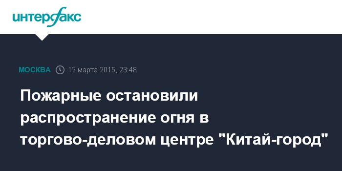 Москва. 12 марта. INTERFAX.RU - Пожарные остановили распространение огня в ТДЦ "Китай-город".