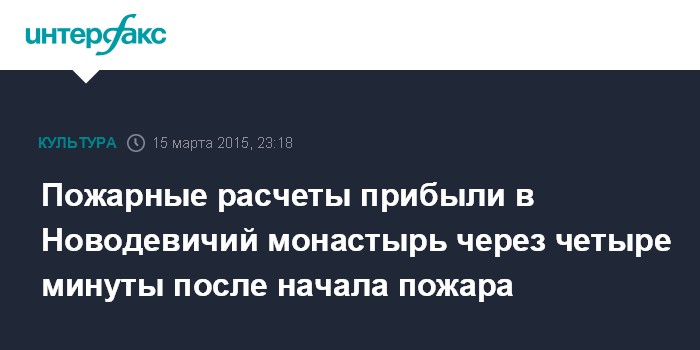 Москва. 15 марта. INTERFAX.RU - Первые пожарные расчеты прибыли для тушения строительных лесов на колокольне Новодевичьего монастыря уже через четыре минуты после сообщения о пожаре, сообщили "Интерфаксу" в пресс-службе ГУ МЧС России по Москве.