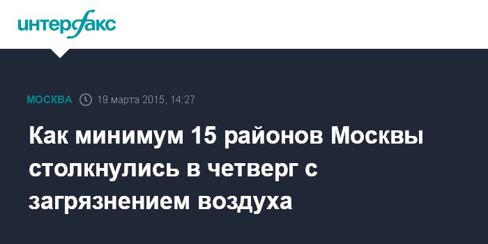 Как минимум 15 районов Москвы столкнулись в четверг с загрязнением воздуха
