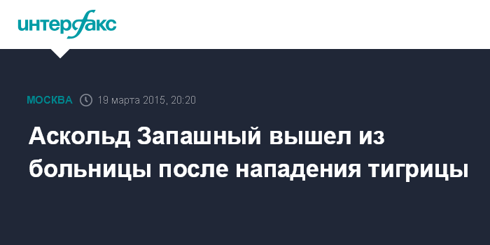 Москва. 19 марта. INTERFAX.RU - Дрессировщик Аскольд Запашный вышел из больницы после нападения тигрицы на съемках фильма о дрессировщице Маргарите Назаровой, сообщает "М24".