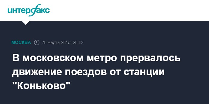 Москва. 20 марта. INTERFAX.RU - Движение поездов метро между станциями "Коньково" и "Беляево" в сторону "Новоясеневской" прервалось по техническим причинам, сообщили "Интерфаксу" в информационном центре столичного департамента транспорта и развития дорожно-транспортной инфраструктуры.