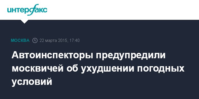 Москва. 22 марта. INTERFAX.RU - Госавтоинспекция предупреждает водителей столицы и области неблагоприятных погодных условиях и гололедице на дорогах.