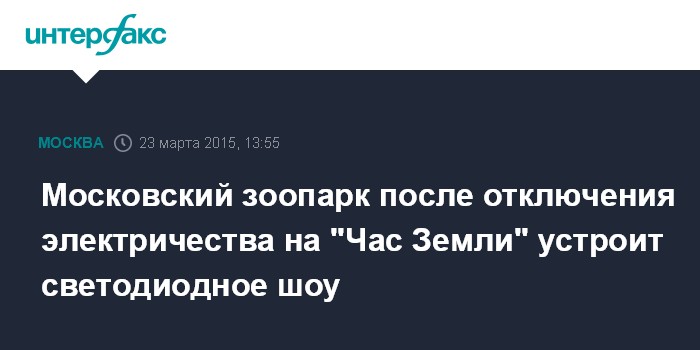 "28 марта Московский зоопарк вместе с Всемирным фондом дикой природы WWF приглашает всех присоединиться к акции Час Земли и ждет на праздник, посвященный этому событию. (...) Ровно в 20:30 совместно с WWF мы объявим начало акции и на один час отключим подсветку Главного входа! После этого вас ждет зрелищное светодиодное шоу!" - говорится в сообщении.