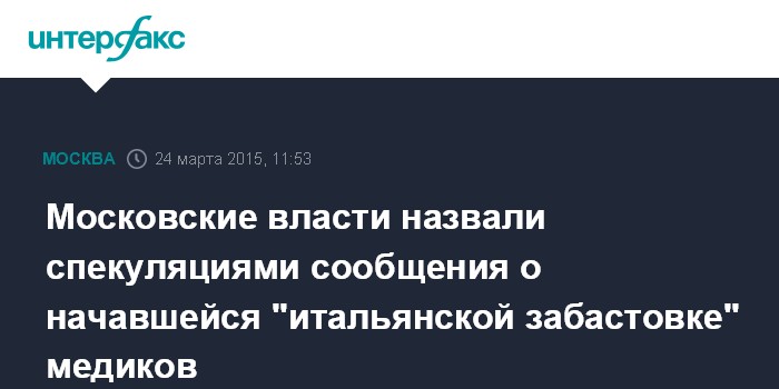 Москва. 24 марта. INTERFAX.RU - Глава департамента здравоохранения Москвы Алексей Хрипун назвал политическими спекуляциями сообщения о начавшейся в столице "итальянской забастовке".