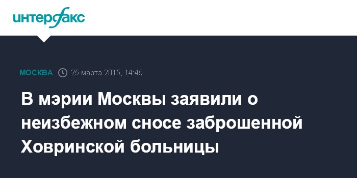В мэрии Москвы заявили о неизбежном сносе заброшенной Ховринской больницы