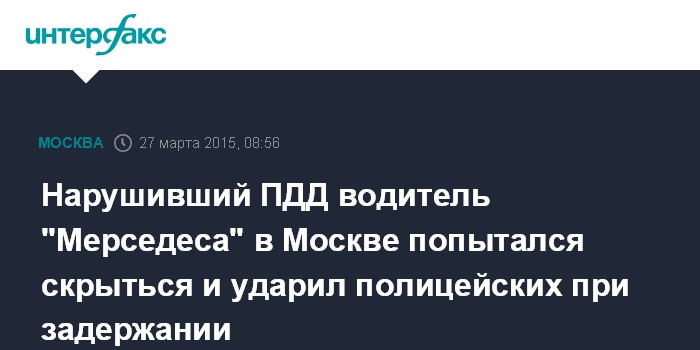 Нарушивший ПДД водитель "Мерседеса" в Москве попытался скрыться и ударил полицейских при задержании