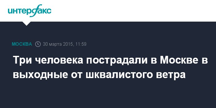 Москва. 30 марта. INTERFAX.RU - Три человека незначительно пострадали в Москве из-за шквалистого ветра в минувшие выходные, все они находятся в удовлетворительном состоянии, сообщили "Интерфаксу" в департаменте здравоохранения столицы.