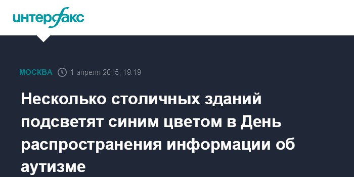 "Во Всемирный день распространения информации об аутизме станут синими дома на Тверской улице и Новом Арбате. В том числе синим зажгутся здания Центрального телеграфа, издательства "Известия", дома-книжки на Новом Арбате и жилые высотки напротив - всего 12 зданий", - уточнили в департаменте.