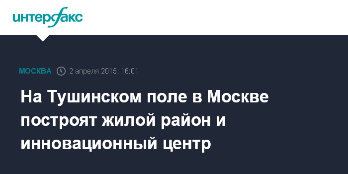 На Тушинском поле в Москве построят жилой район и инновационный центр