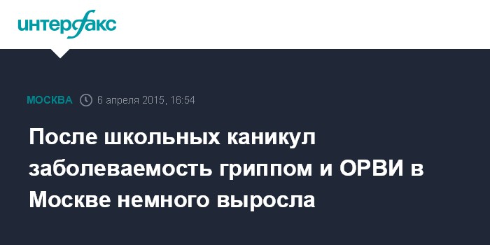 Москва. 6 апреля. INTERFAX.RU - Заболеваемость гриппом и ОРВИ в Москве немного выросла в связи с возвращением детей в школы после весенних каникул, сообщили "Интерфаксу" в понедельник в столичном управлении Роспотребнадзора.