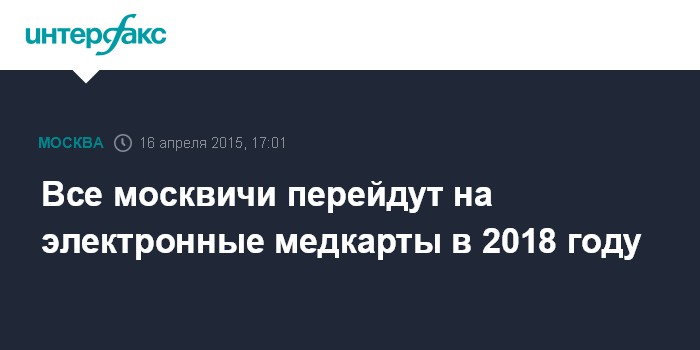 Москва. 16 апреля. INTERFAX.RU - Все москвичи будут переведены на обслуживание по электронным медицинским картам (ЭМК) в 2018 году, сообщил заместитель главы департамента информационных технологий Москвы Владимир Макаров.