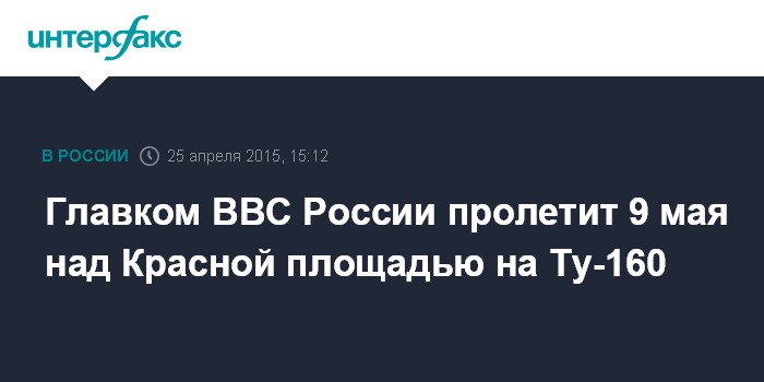 Москва. 25 апреля. INTERFAX.RU - Главнокомандующий Военно-воздушными силами РФ Виктор Бондарев примет непосредственное участие в воздушной части парада Победы над Красной площадью.