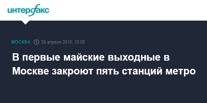 Москва. 28 апреля. INTERFAX.RU - Несколько станций Сокольнической и Таганско-Краснопресненской линий московского метро будут закрыты в первые майские выходные в связи с подготовкой новых участков, сообщила пресс-служба столичного метрополитена.