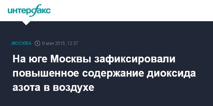 Москва. 6 мая. INTERFAX.RU - Московские метеорологи зафиксировали почти двойное превышение нормы содержания диоксида азота в воздухе на юге столицы, сообщает пресс-служба Росгидромета.