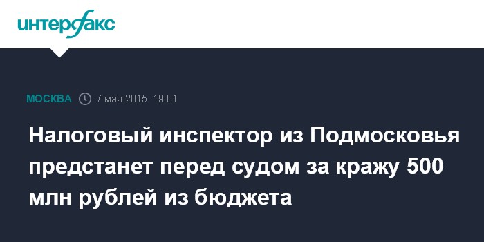 Налоговый инспектор из Подмосковья предстанет перед судом за кражу 500 млн рублей из бюджета