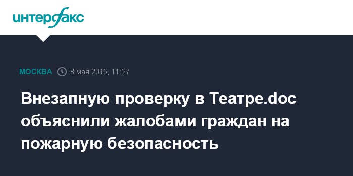 Москва. 8 мая. INTERFAX.RU - Проверка в Театр.doc связана с состоянием противопожарной безопасности в этом помещении, сообщил "Интерфаксу" источник в правоохранительных органах столицы в пятницу.